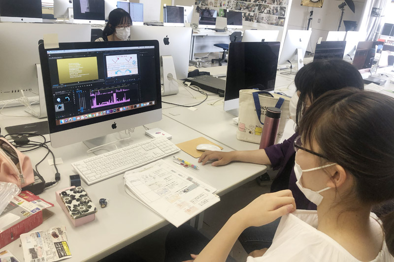 本制作は2月よりスタートし9月中旬に完成しました。コロナ禍のなか何度もオンラインミーティングを重ね、夏休み期間中もほぼ毎日通学し動画編集を繰り返し、9月中旬に完成させました。