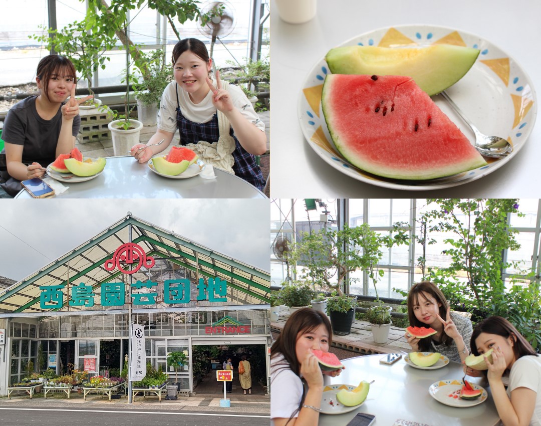 西島園芸団地では、園内の草花たちを鑑賞しながら、園内で栽培されたメロンとスイカを味わいました。
