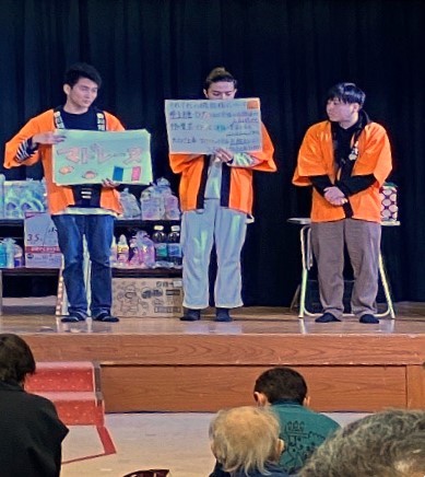 令和6年2月23日(金・祝)、新宇多津都市にある四国健康村(有限会社 萩原総業)で食物栄養専攻調理&商品開発ゼミ学生4名が、ゼミで考案した希少糖、柿の葉の粉茶を入れたマドレーヌを作り販売しました。販売にあたり、地元で開発された希少糖(一般社団法人希少糖普及協会)や柿の葉粉末(柿茶本舗有限会社)の機能性を説明し、マドレーヌの特徴について、プレゼンテーションしたところ、多くの来場者の方達が熱心に聞いていました。