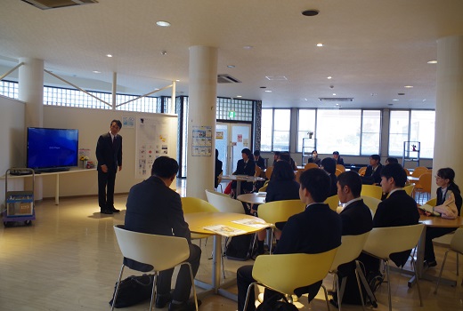 10月30日(水)香川県立琴平高等学校の1年生26名と引率の先生が大学見学に来られました。入試センターからの大学概要説明や紹介DVDを見て頂いた後、学内の施設や設備等を見学した後、模擬授業も体験しました。