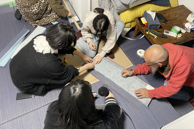 このような内装工事の技術や裁縫技術を駆使することで、学内の授業だけでは経験できない現場の作業を体験することができました。