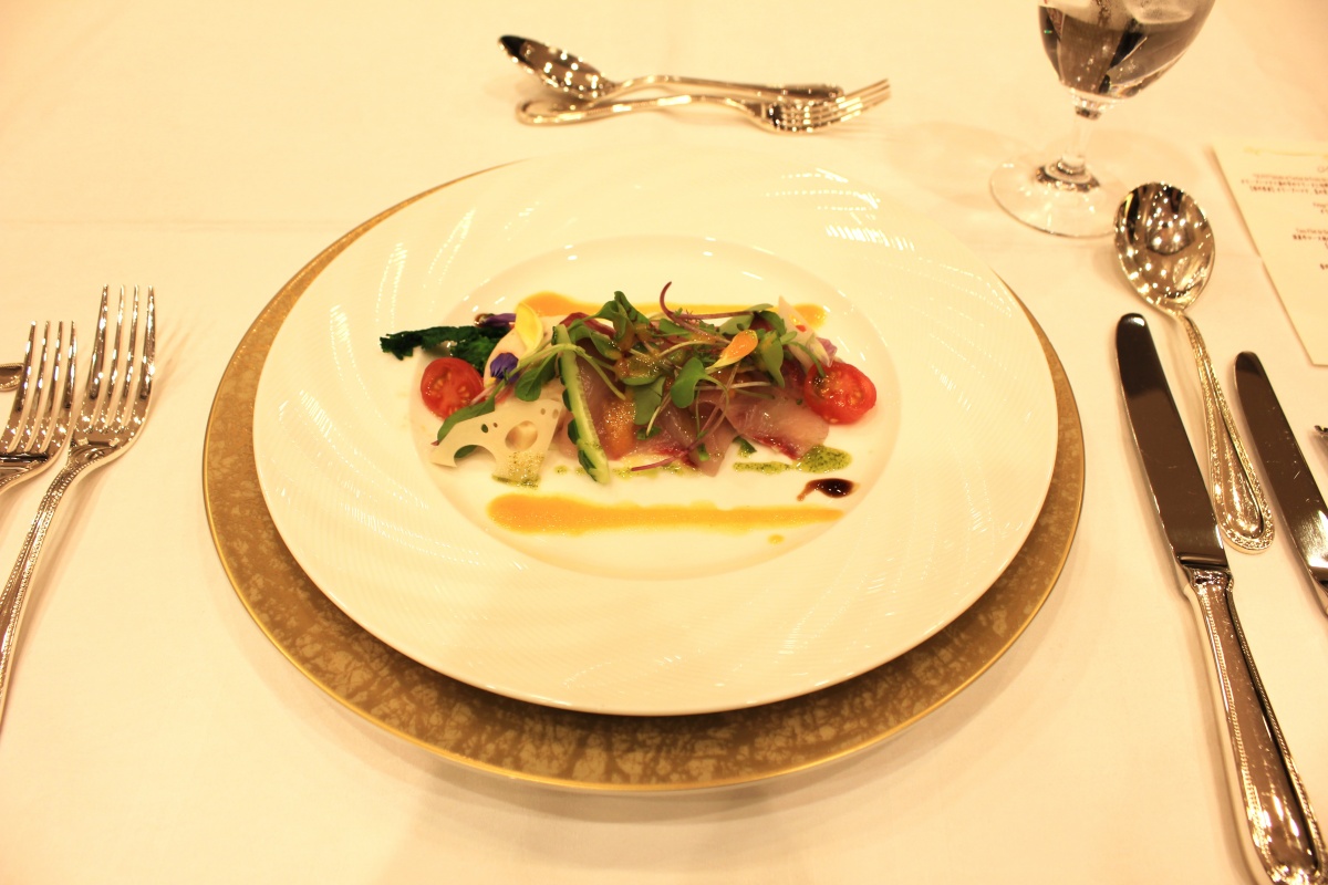 昨年度に続き、高松国際ホテルにてスタッフの方のご指導のもと、実際にコース料理を食べながら食事のマナーを学びました。料理については、総料理長から説明がありました。
