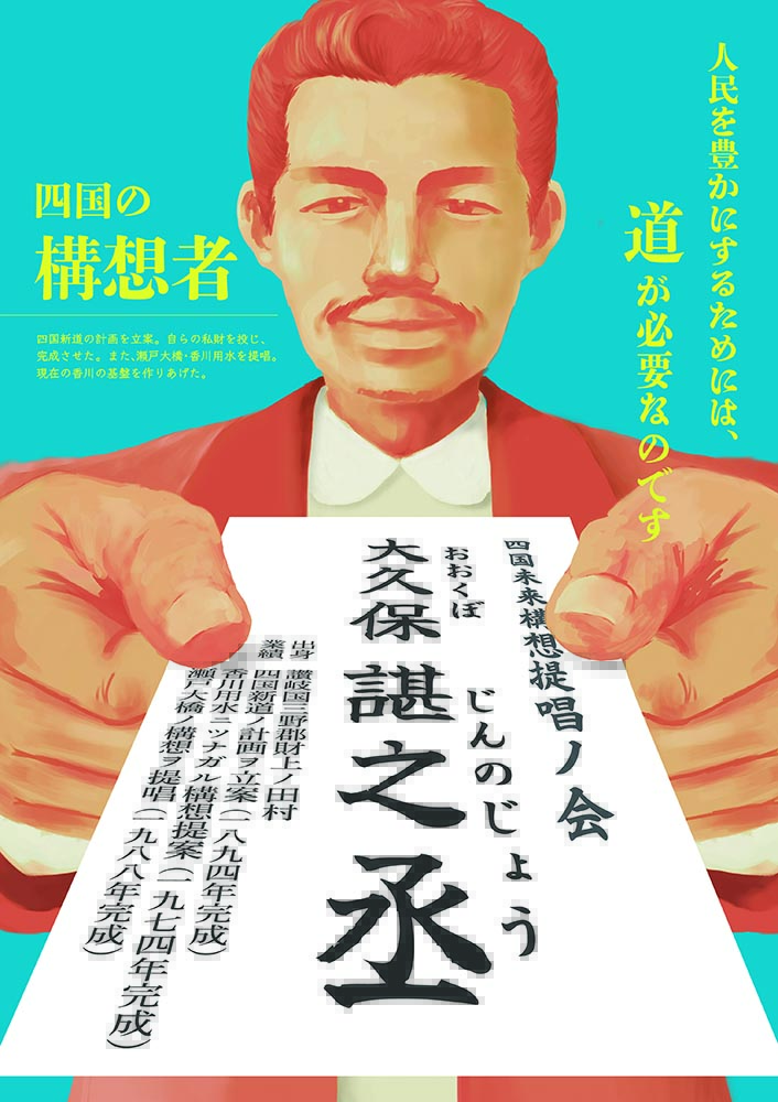 香川県内で活躍する様々な分野のデザイナーやクリエイティブな仕事に就く個人や企業の交流団体『Creators Club Takamatsu (CCT)』が主催する、CCT学生DesignAward2024にて、デザインアートコース2年生の川上真由子さん、同コース2年生の藤原紗那さんがそれぞれ優秀賞を受賞しました。2024年の課題は「偉人を広告する」。四国新道の建設、香川用水や瀬戸大橋構想の提唱など数多くの四国発展の礎を築いた大久保諶之丞を宣伝するポスター制作で、設定されているストーリーを参考にデザインのクオリティを高めていきました。