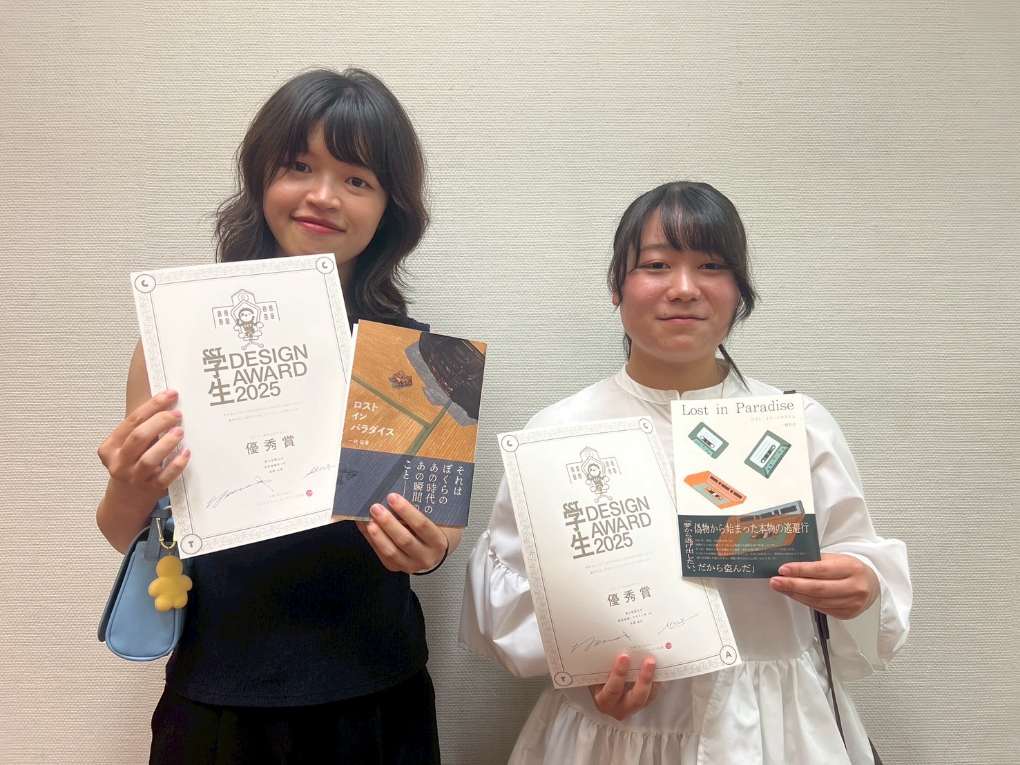 香川県内で活躍する様々な分野のデザイナーやクリエイティブな仕事に就く個人や企業の交流団体『Creators Club Takamatsu (CCT)』が主催する、CCT学生DesignAward2025にて、デザインアートコース2年生の井澤美月さん、同コース2年生の髙畑有希さんがそれぞれ優秀賞を受賞しました。2025年のテーマは「本を広告する」。あらすじから物語を読み解き、本の表紙を作成し、その本をPRするための「帯」もデザインするというもの。設定されているストーリーを参考にデザインのクオリティを高めていきました。