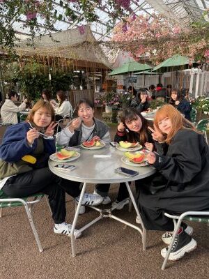 2月9日(金)、食物栄養専攻2年生35名と教職員3名が食に関するクラス研修で高知方面に行ってきました。この研修は、食体験や商業施設の見学を通じて栄養士として食の知識向上を図ることを目的としています。今回は、①道の駅霧の森②ひろめ市場③酔鯨酒造④西島園芸団地⑤道の駅南国風良里の研修先を巡りました。