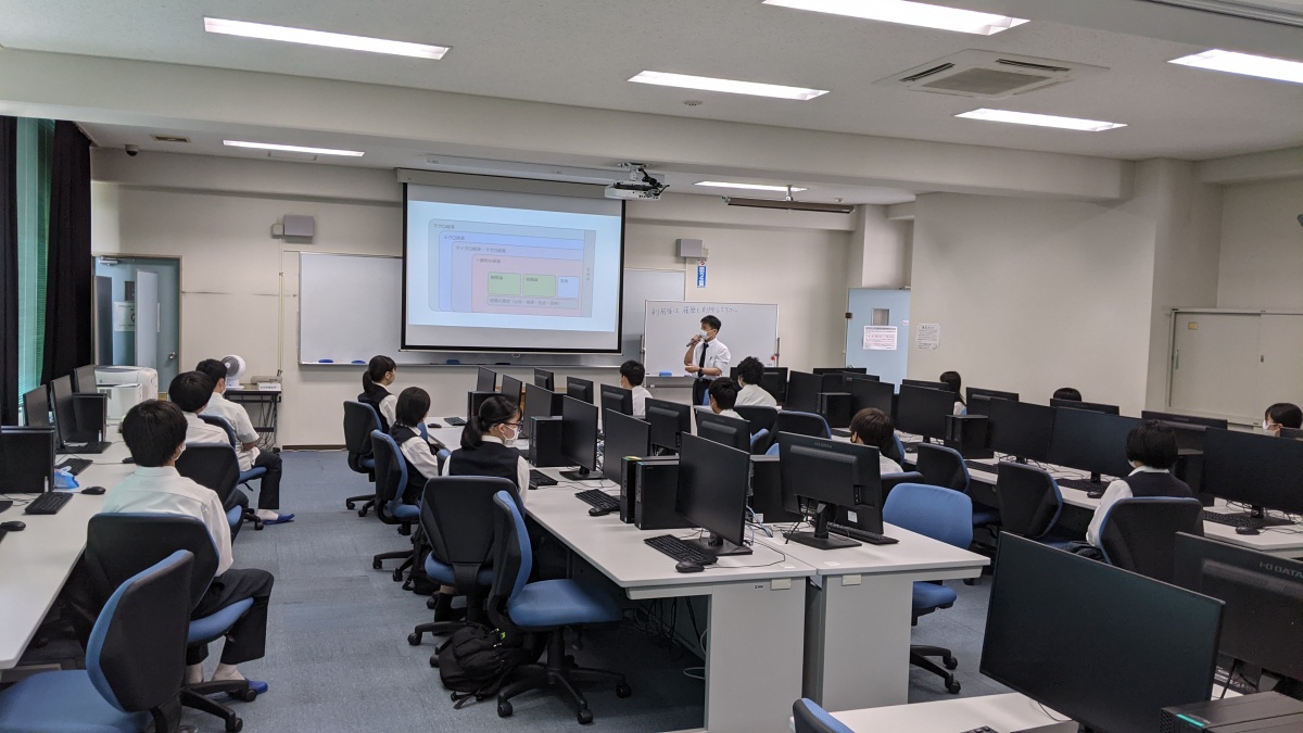 9月30日(木)香川県立飯山高等学校の1年生32名と引率の先生が大学見学に来られました。入試センターからの大学概要説明や紹介DVDを見てもらった後、学科に分かれ授業に参加してもらいました。