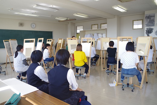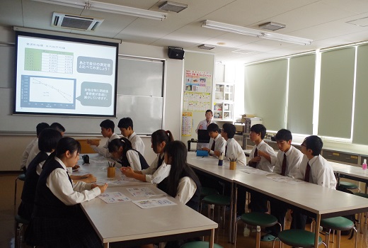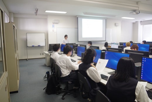 10月3日(木)香川県立飯山高等学校の1年生25名と引率の先生が大学見学に来られました。入試センターからの大学概要説明や紹介DVDを見てもらった後、学科に分かれ授業に参加してもらいました。